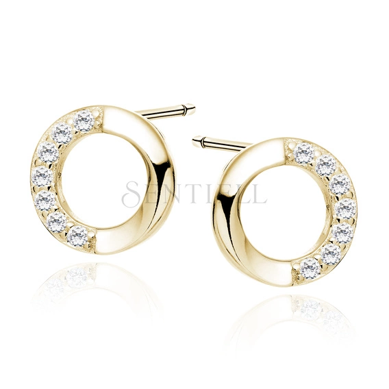 Srebrne pozłacane kolczyki pr.925 koła z białymi cyrkoniami