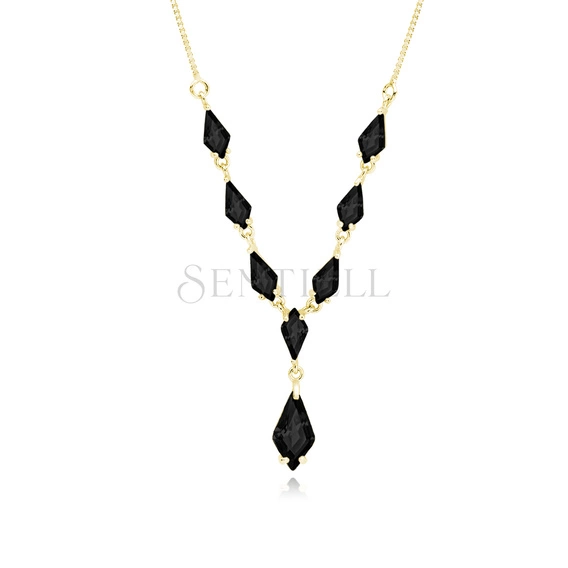 Srebrny, stylowy, ślubny, pozłacany naszyjnik pr.925 z czarnymi cyrkoniami