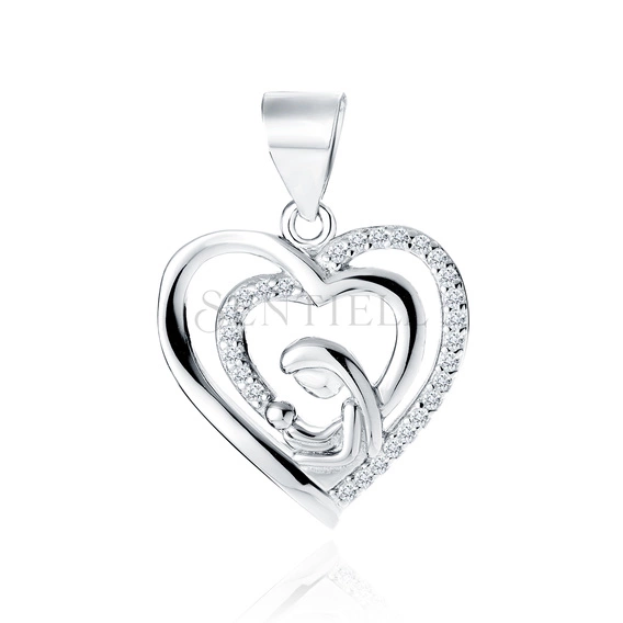 Srebrna zawieszka pr.925 matka z dzieckiem w sercu z białymi cyrkoniami