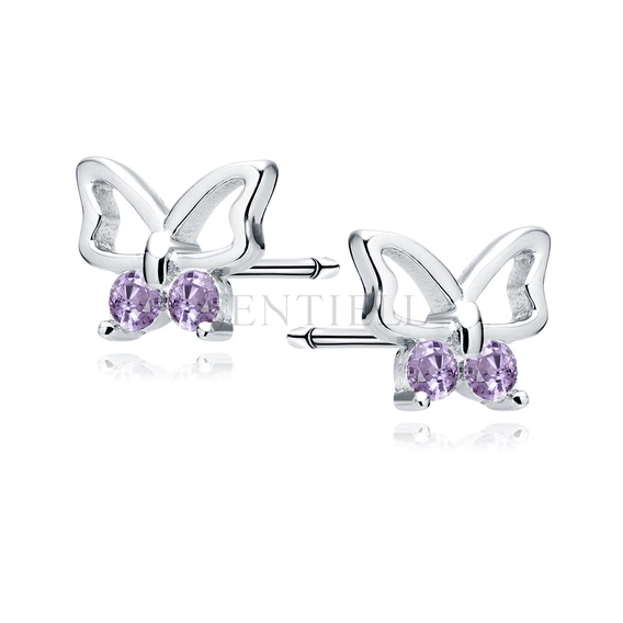 Srebrne kolczyki pr.925 motyl z fioletowymi cyrkoniami