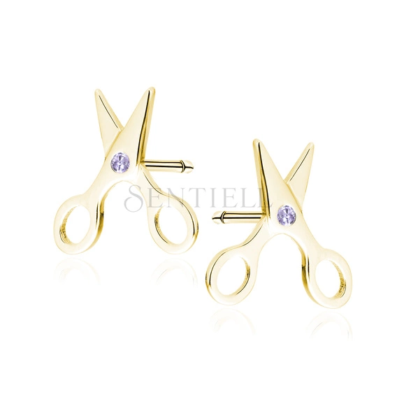 Srebrne pozłacane kolczyki pr.925 nożyczki z fioletowymi cyrkoniami