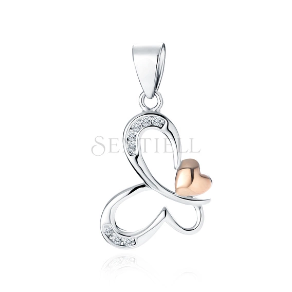 Srebrna zawieszka pr.925 motyl z sercem pozłacanym różowym złotem i białymi cyrkoniami