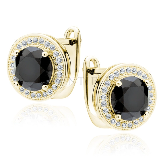 Srebrne pr.925 pozłacane kolczyki okrągła czarna cyrkonia