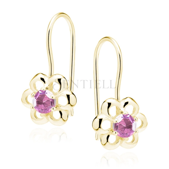 Srebrne pozłacane kolczyki pr 925 Cyrkonia różowa