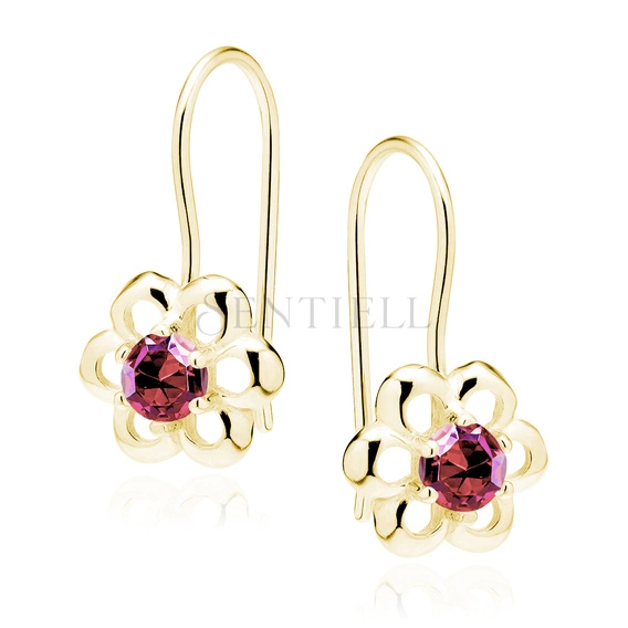 Srebrne pozłacane kolczyki pr 925 Cyrkonia rubinowa
