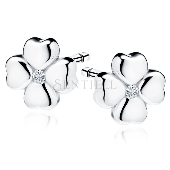 srebrne kolczyki pr.925 koniczynki z białą cyrkonią