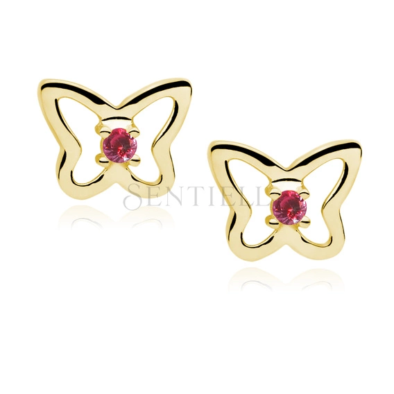 Srebrne kolczyki pr. 925 Cyrkonia rubinowa motylki pozłacane