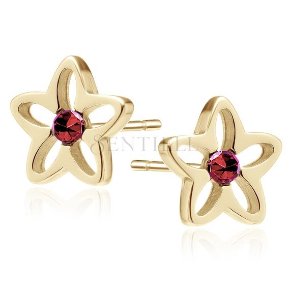 Srebrne pozłacane kolczyki pr 925 z rubinową cyrkonią - kwiatki