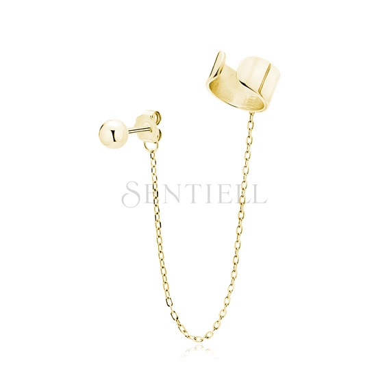 Srebrne pozłacane kolczyki pr.925 z nausznicą na łańcuszku
