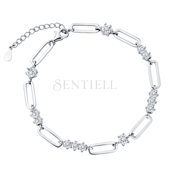Srebrna bransoletka pr.925 ogniwka i białe cyrkonie