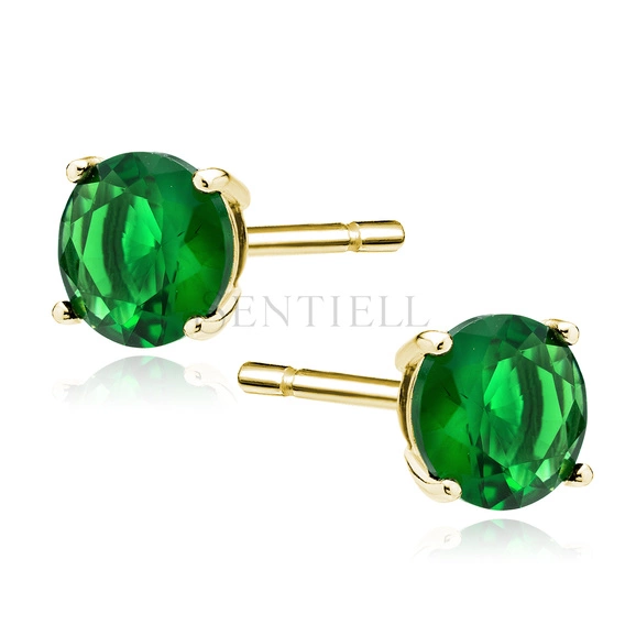 Srebrne pozłacane kolczyki pr.925 zielona cyrkonia okrągła średnica 7mm