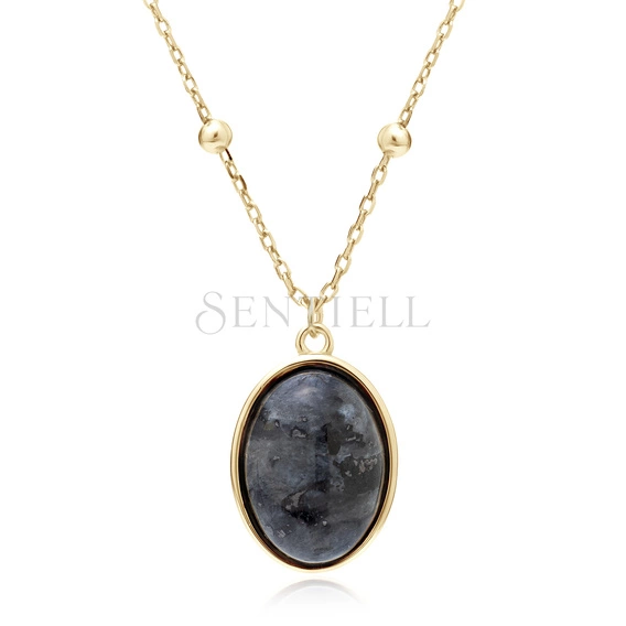 Srebrny pozłacany naszyjnik pr.925 z czarnym larvikitem i kuleczkami na łańcuszku