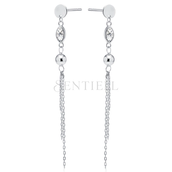 Srebrne kolczyki pr. 925 z białą cyrkonią, kulką i łańcuszkami