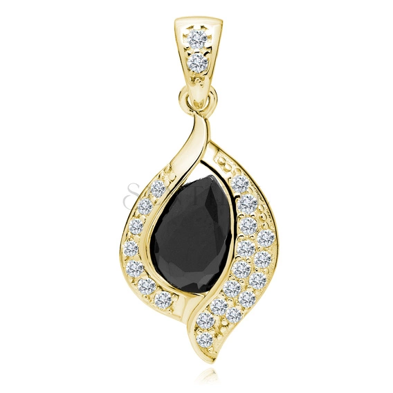 Srebrna, pozłacana, delikatna zawieszka pr.925 - czarna kropla w cyrkoniach