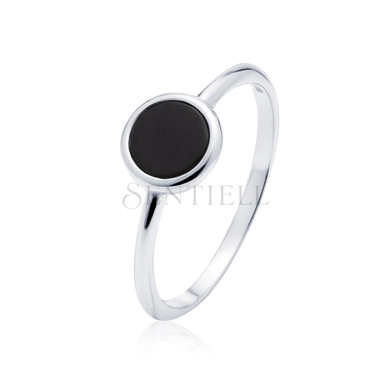 - Srebrny pr. 925 pierścionek z czarną emalią
