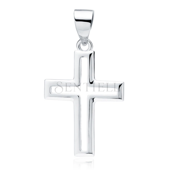 Srebrny pr. 925 krzyżyk ażurowy rodowany 27 x 15 mm