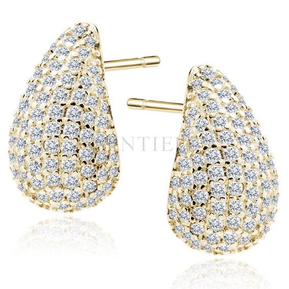 Srebrne pozłacane kolczyki pr.925 krople z białymi cyrkoniami