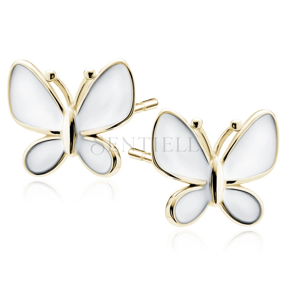 Srebrne pozłacane kolczyki pr.925 białe emaliowane motylki