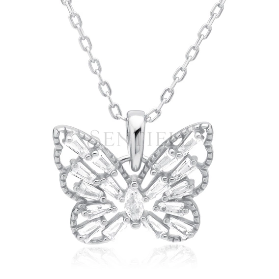 Srebrny naszyjnik pr.925 z białą cyrkonią - motyl