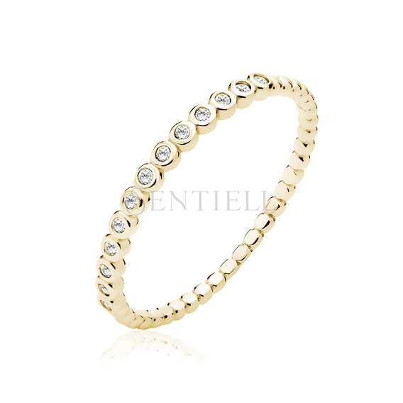 Srebrny pozałacany pierścionek pr.925 z białymi cyrkoniami
