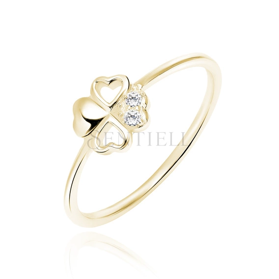 Srebrny pozłacany pierścionek pr.925 koniczynka z białymi cyrkoniami