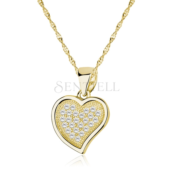 Srebrny pozłacany naszyjnik pr.925 serce z białymi cyrkoniami (Jasny odcień złocenia)
