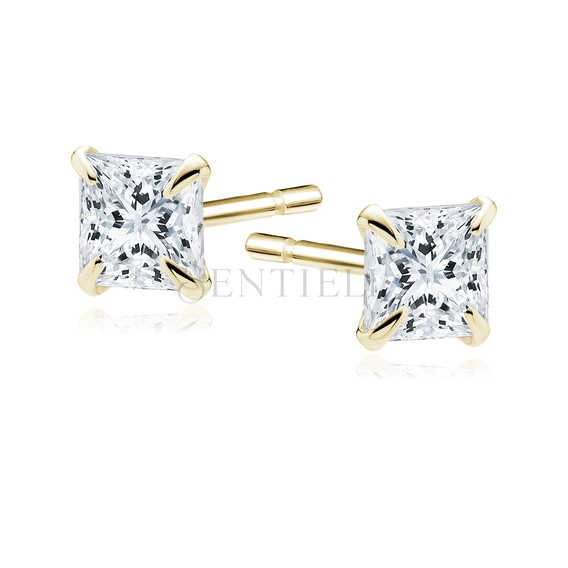 Srebrne, pozłacane kolczyki pr.925 cyrkonia biała 3 x 3mm kwadratowe