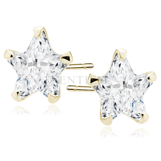 Srebrne pozłacane kolczyki pr.925 cyrkonia biała 7 x 7mm gwiazdki
