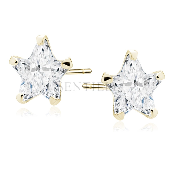 Srebrne pozłacane kolczyki pr.925 cyrkonia biała 6 x 6mm gwiazdki