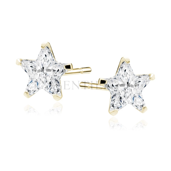 Srebrne pozłacane kolczyki pr.925 cyrkonia biała 4 x 4mm gwiazdki