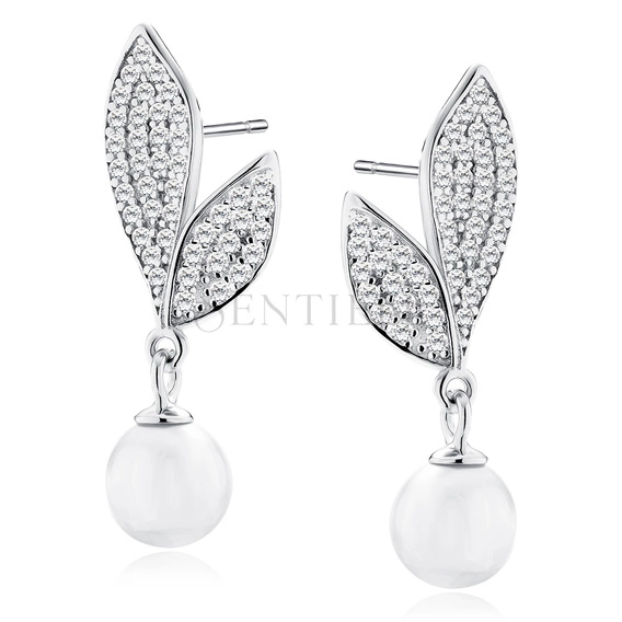 Srebrne kolczyki pr. 925 z białymi cyrkoniami i perłą