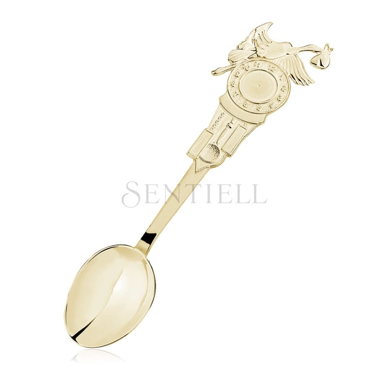Srebrna pozłacana łyżeczka dla dziecka pr.925 grawer bocian