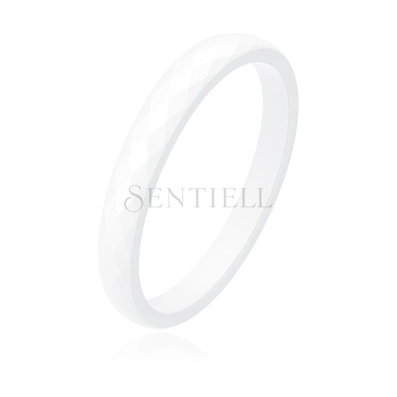 Bialy fasetowany pierścionek ceramiczny 4mm