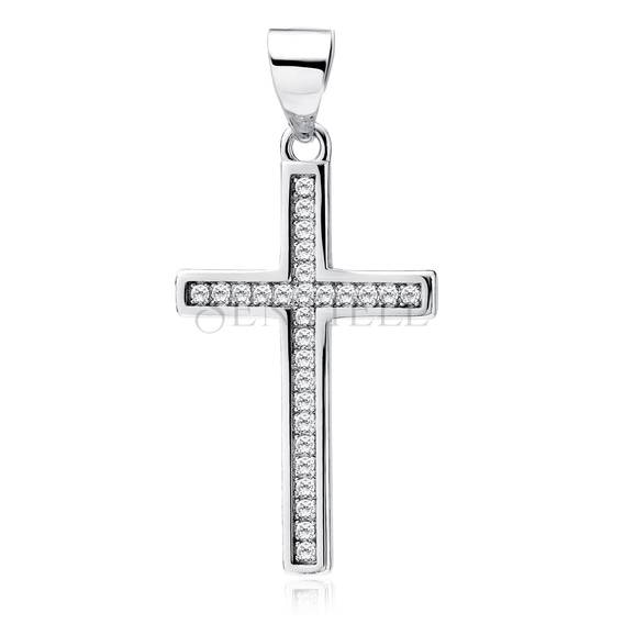Srebrny pr. 925 krzyżyk rodowany z białymi cyrkoniami 29 x 14 mm