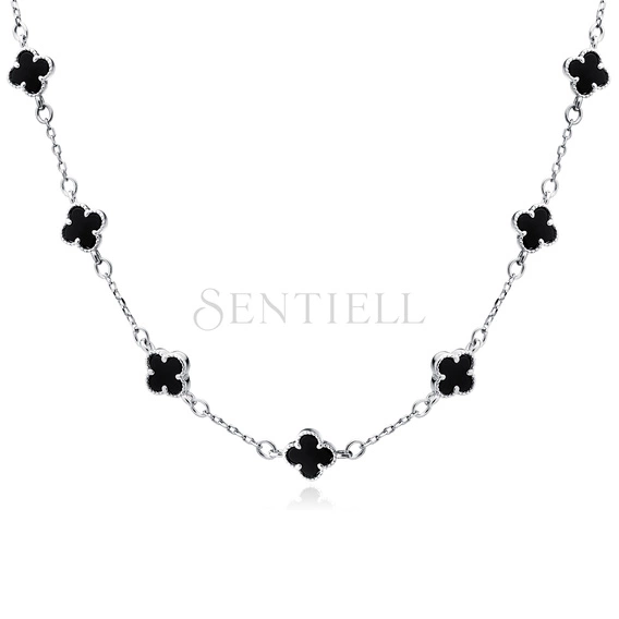 Srebrny naszyjnik pr.925 z czarnym onyksem - czterolistna koniczynka
