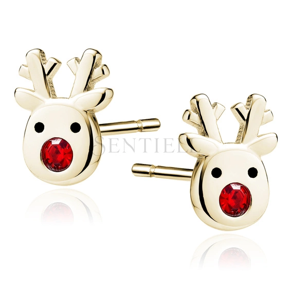 - Srebrne pozłacane kolczyki pr. 925 renifer z czerwonym nosem