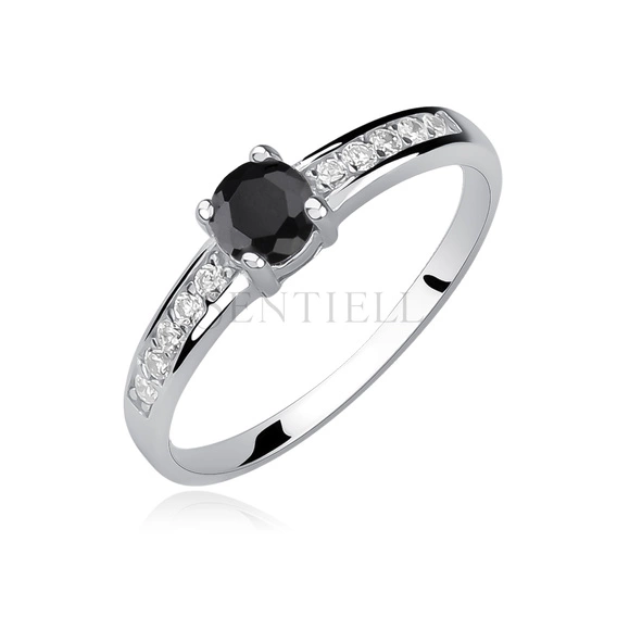 Srebrny pierścionek pr.925 z białymi i czarną cyrkonią