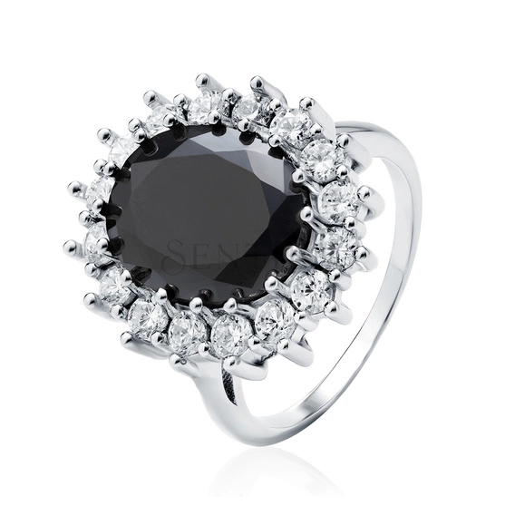 Srebrny duży pierścionek pr.925 Cyrkonia czarna - karmazycja